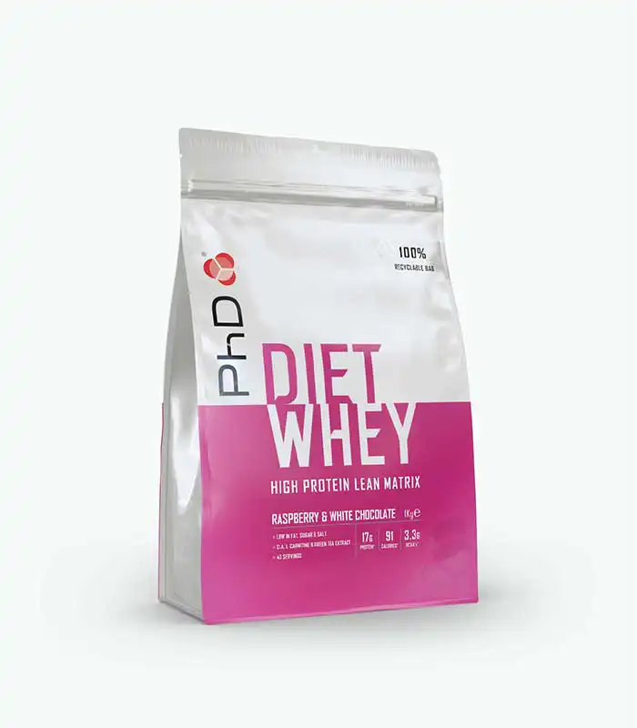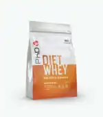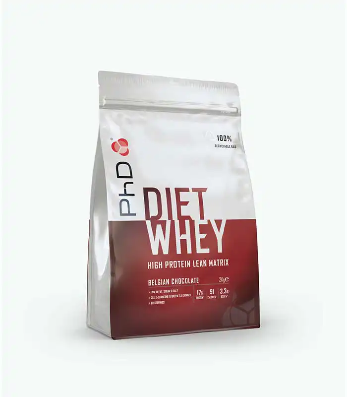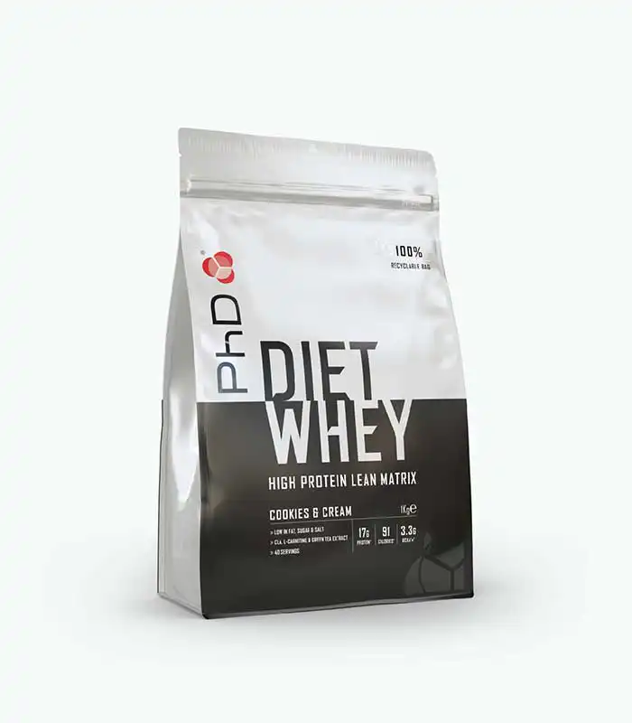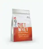 PhD Diet Whey pruža 17g kvalitetnog proteina po porciji, sadrži manje od 3g ugljenih hidrata i manje od 100 kalorija na 25g suplementa, te podržava osećaj sitosti između obroka. Takođe sadrži sastojke poput L-karnitina, CLA i ekstrakta zelenog čaja koji podržavaju sagorevanje masti.