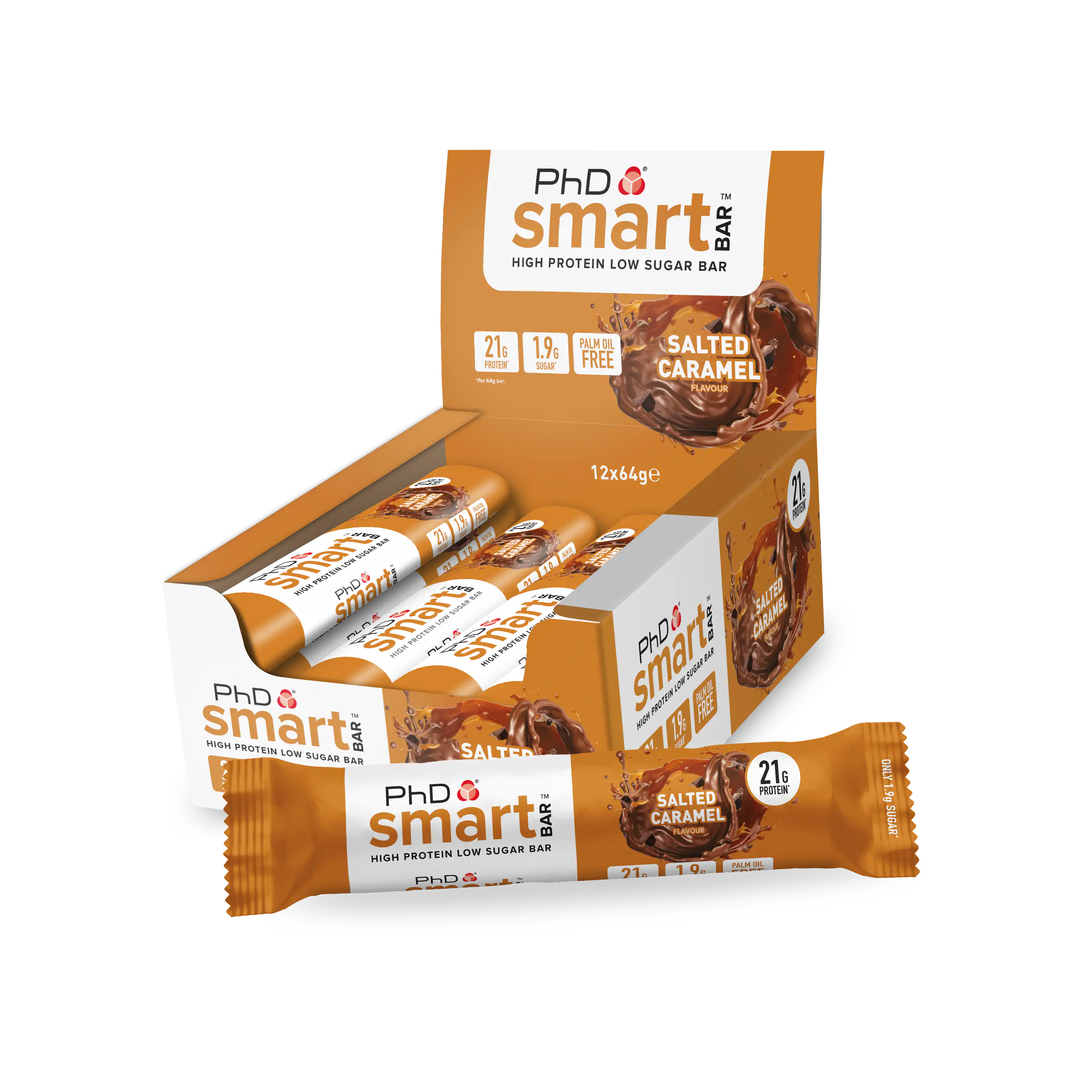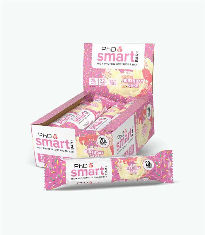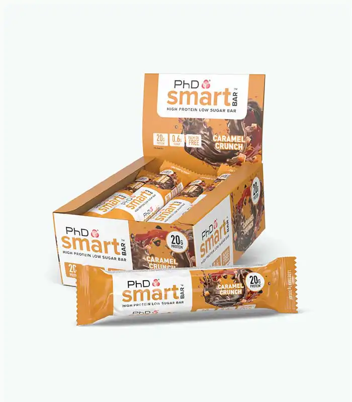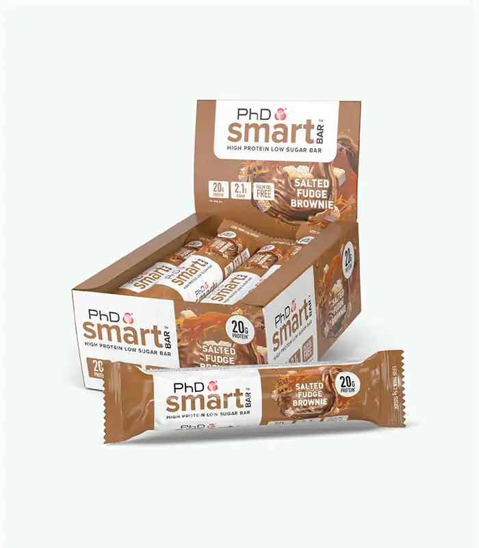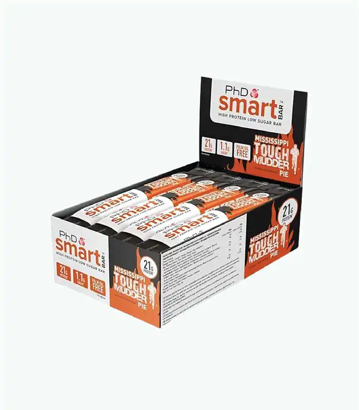 PhD Smart Bar je proteinska čokoladica koja je proizvedena u devet različitih ukusa: Caramel Crunch, Chocolate Brownie, Choc Peanut Butter, Cookies and Cream, Dark Choc Raspberry, Salted Fudge Brownie, White Choc Blondie, Birthday Cake, Mississippi Tough Mudder Pie.