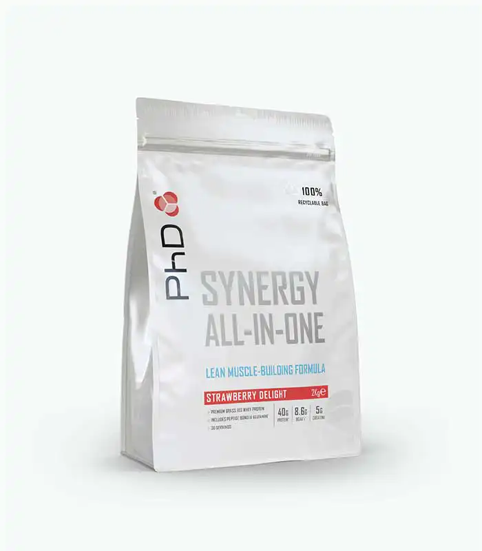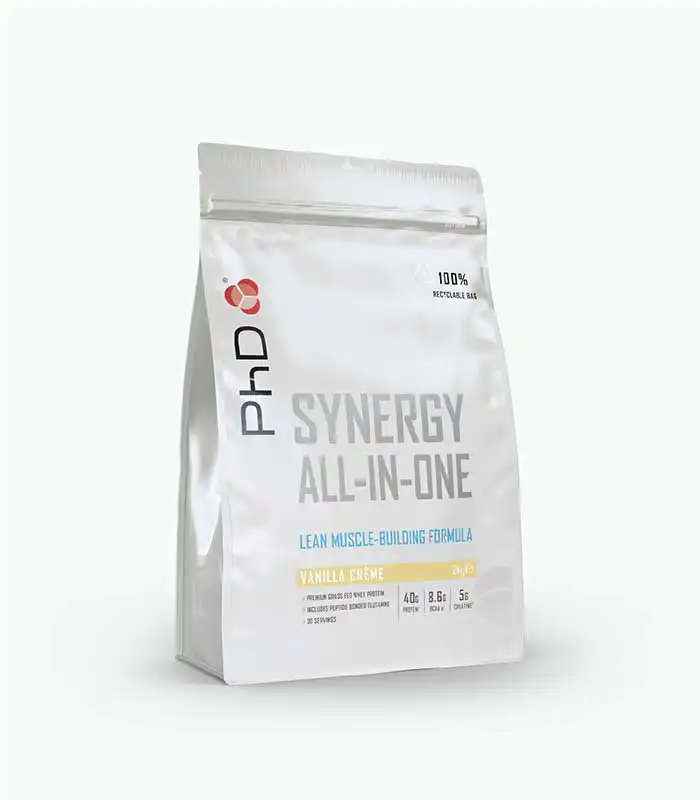 'All’In’One' se odnosi na to što PhD Synergy može pružiti mnoštvo koristi od različitih sastojaka unutar jednog šejka. Ako tražite inteligentnu formulu koja će vam pomoći da održite mišićnu masu, ne unesete mnogo šećera, a unosite i kreatin, ovaj šejk može biti pravi izbor za vas.
