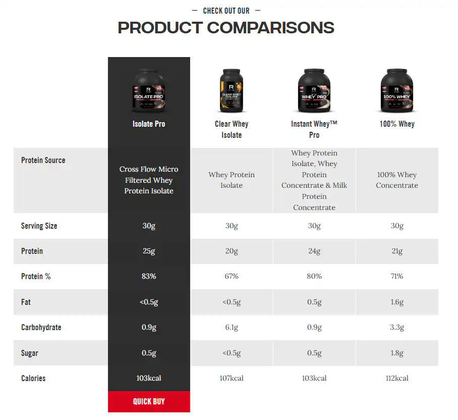 Isolate Pro sadrži 83% proteina naspram 70% u koncentratu, ima minimalan sadržaj laktoze, masti i ugljenih hidrata, brže se apsorbuje i obogaćen je DigeZyme® enzimima. Koncentrat zadržava više prirodnih nutrijenata iz surutke ali sadrži više laktoze i kalorija. Izolat je idealan za osetljive osobe i kada je potreban najčistiji protein.